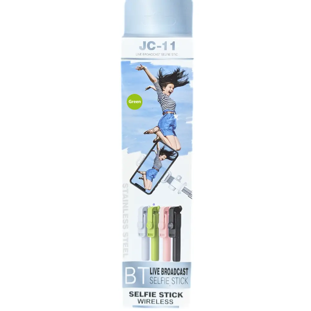 Captura tus mejores momentos con el Selfie Stick Modelo JC - 11S en verde. Duradero, ajustable y fácil de usar para todos tus selfies.