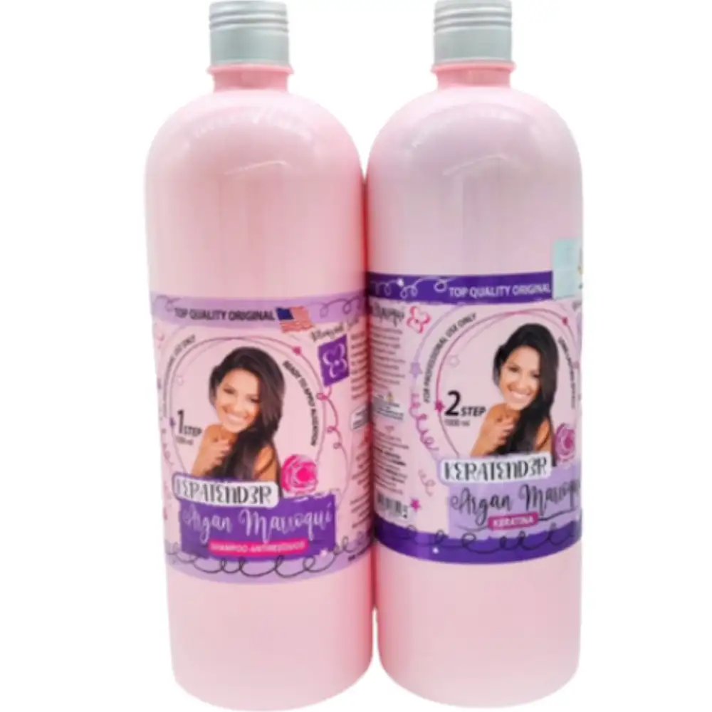 Alisado profesional de 1000 ml con aceite de argán marroquí y champú sin residuos, brinda cabello liso, brillante y sin frizz, ideal para uso en salón o casa, resultados duraderos y cuidado nutritivo.