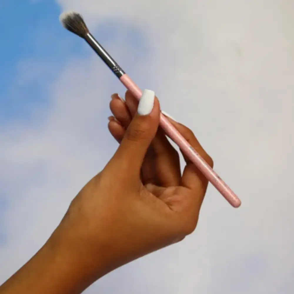 • Su forma puntiaguda y diámetro reducido la convierte en la herramienta perfecta para resaltar los puntos más estratégicos del rostro, como el hueso de la ceja, el centro del pecho o el lagrimal, ofreciendo una difusión sutil y una definición nítida del iluminador que realza la luminosidad natural sin crear acumulaciones o brillos excesivos.