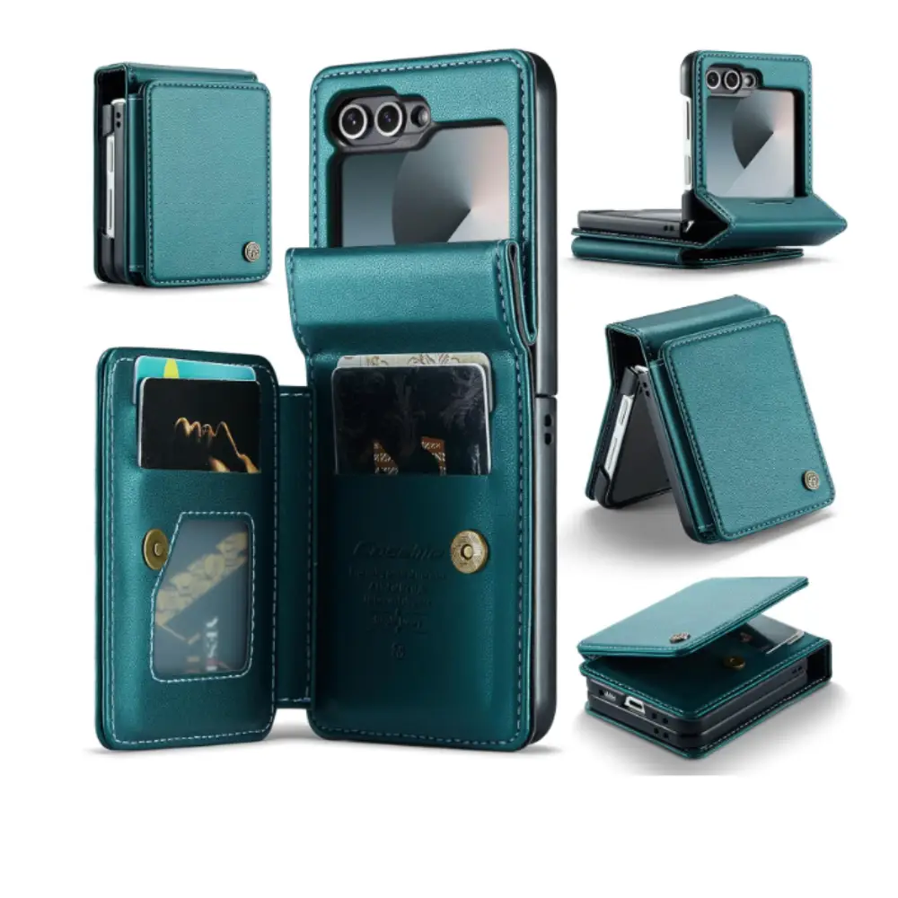 • Diseño tipo billetera: Incluye compartimentos para tarjetas y efectivo, ideal para quienes buscan un estuche práctico y funcional que elimine la necesidad de llevar una billetera adicional.