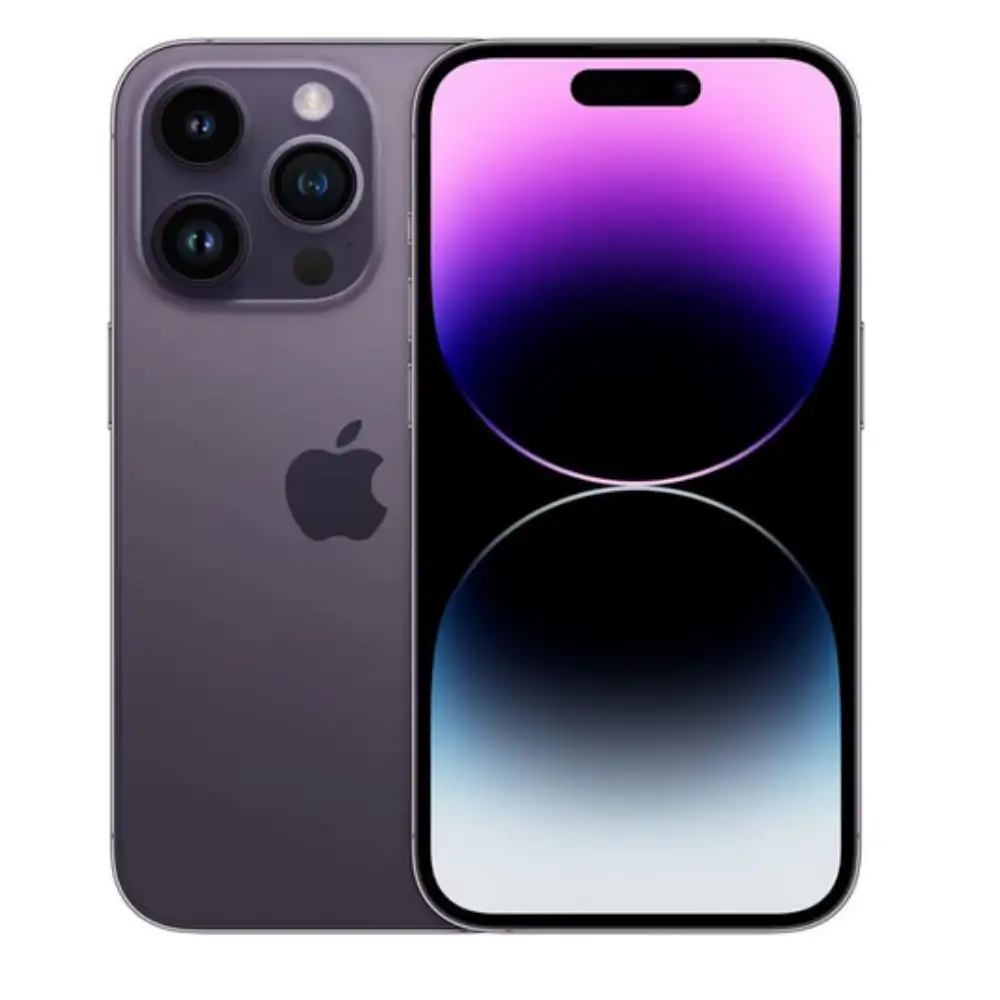 iPhone 14 Pro Max renovado de 128 GB con eSIM, pantalla Super Retina XDR de 6.7”, chip A16 Bionic, cámara Pro de 48 MP y color morado profundo, calidad premium.
