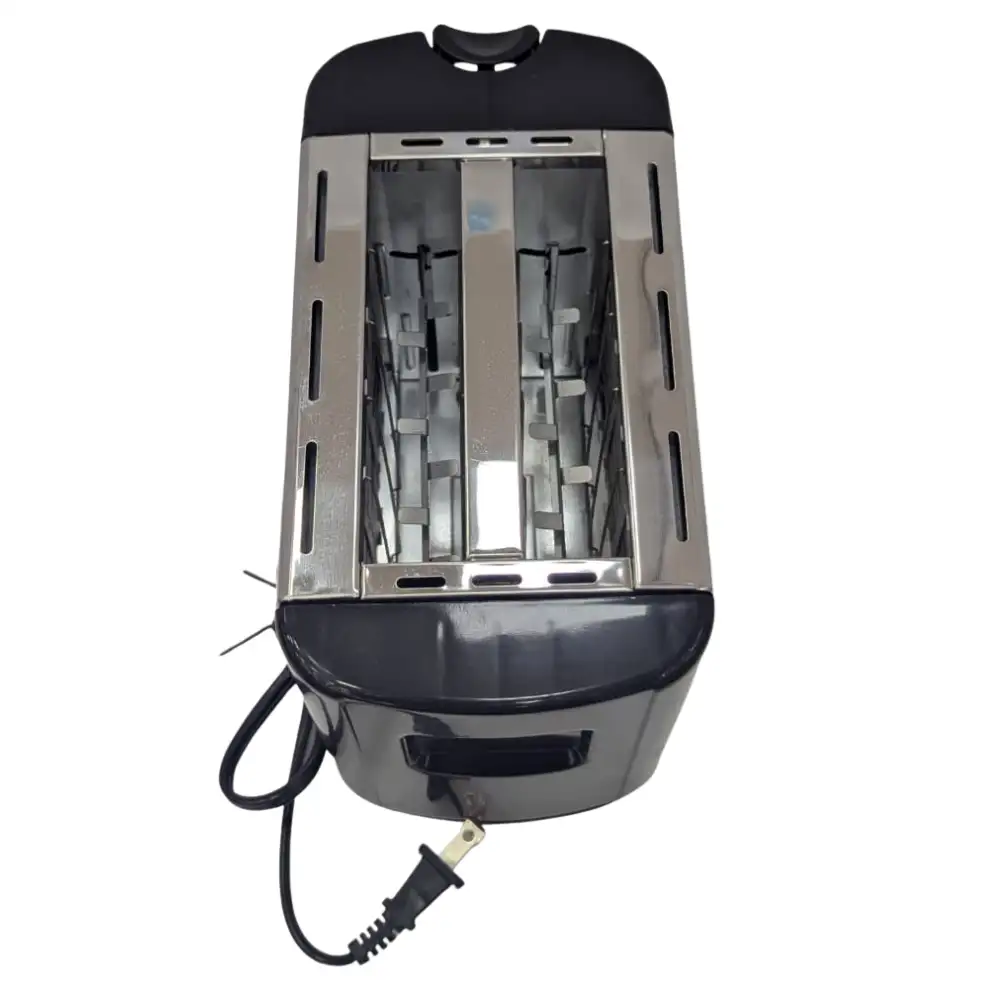 • Su diseño compacto y elegante se adapta perfectamente a cualquier encimera, ocupando un espacio mínimo sin sacrificar funcionalidad la carcasa de acero inoxidable pulido no solo aporta resistencia y durabilidad, sino que también aporta un toque moderno que complementa la decoración de la cocina, mientras que los botones de fácil acceso y la palanca de expulsión de rebanadas hacen que su uso sea intuitivo y cómodo para usuarios de todas las edades.