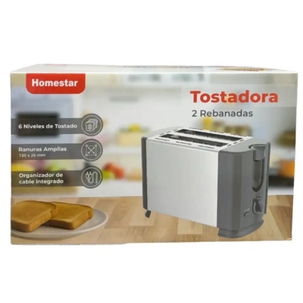 Descubre la Tostadora Homestar de 2 rebanadas, con potencia de 800W, control de tostado ajustable y bandeja anti‑goteo, perfecta para desayunos rápidos y panes artesanales en Panamá.