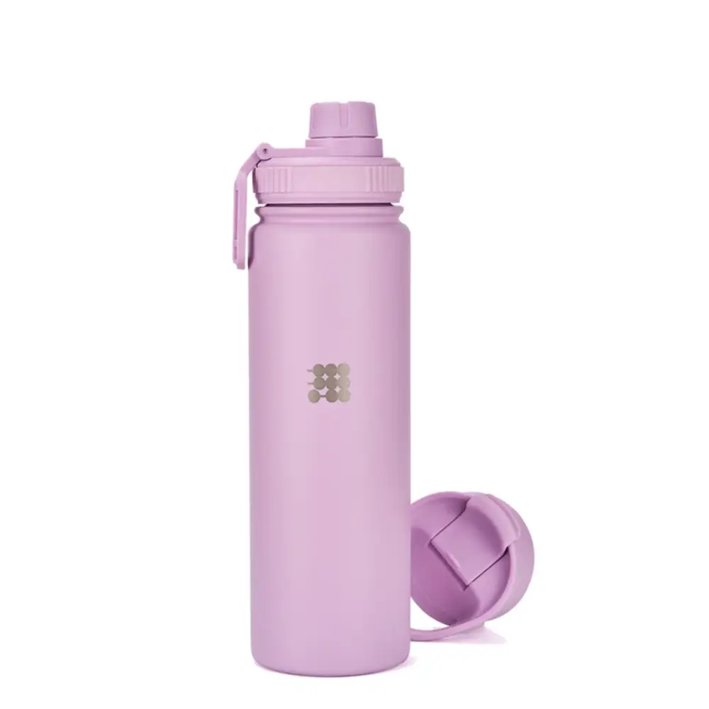 Termo Hydro Bottle 24 ons morado claro, acero inoxidable, libre de BPA. Mantiene líquidos fríos por 24h y calientes por 12h. Ideal para la vida activa.