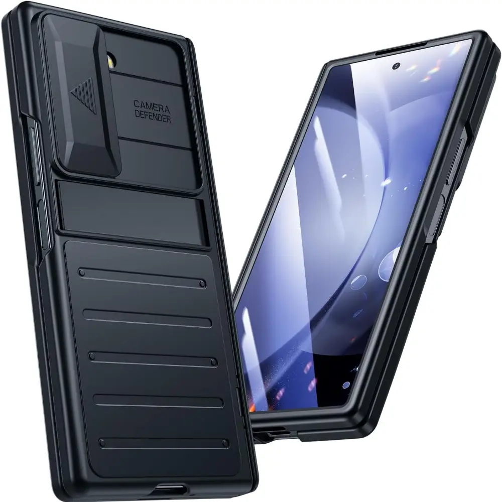 Funda para Samsung Galaxy Z-Fold-6 con carga inalámbrica, protección de bisagra y cubierta deslizante para cámara. Ideal para mantener su dispositivo seguro.