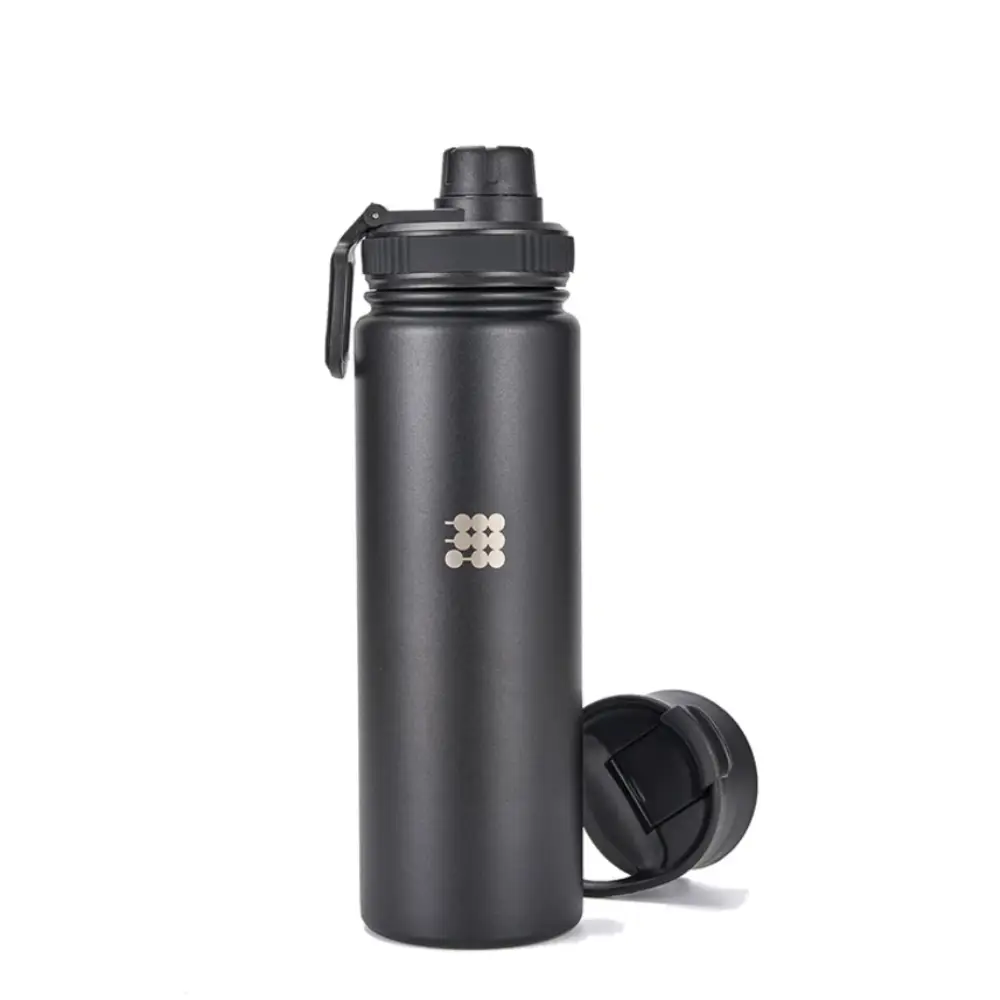 Termo Hydro Bottle de 24 onzas en negro, acero inoxidable, libre de BPA, aislamiento al vacío, tapas a prueba de fugas. ¡Mantén tus bebidas perfectas!