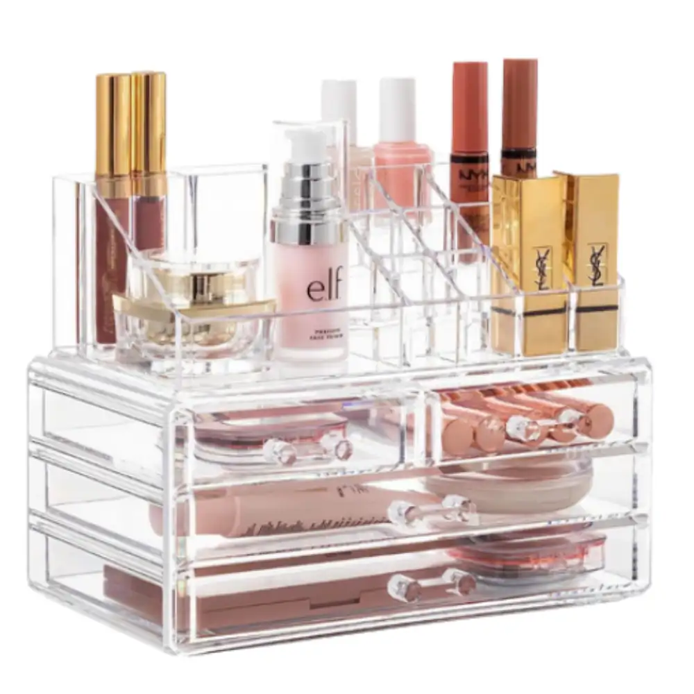 • Con este organizador, la organización de tus productos de belleza se vuelve intuitiva y eficiente los cajones de acceso suave permiten extraer y devolver los artículos sin esfuerzo, evitando derrames o roturas, mientras que la disposición vertical de los niveles aprovecha la altura del espacio, manteniendo la superficie de trabajo libre y ordenada, lo que se traduce en una mayor rapidez al aplicar maquillaje y una experiencia más agradable.