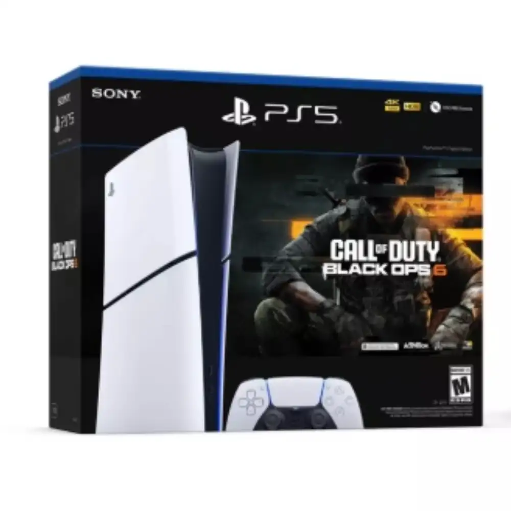 Consola digital PlayStation 5 modelo Slim con juego digital Call of Duty Black Ops 6 incluido. Potencia, diseño compacto y tecnología avanzada para gamers.
