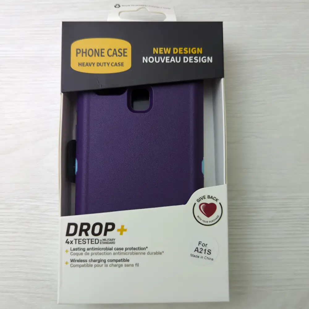 Cover protectora resistente para Galaxy A21S en color violeta, ideal para proteger tu dispositivo con estilo y funcionalidad.
