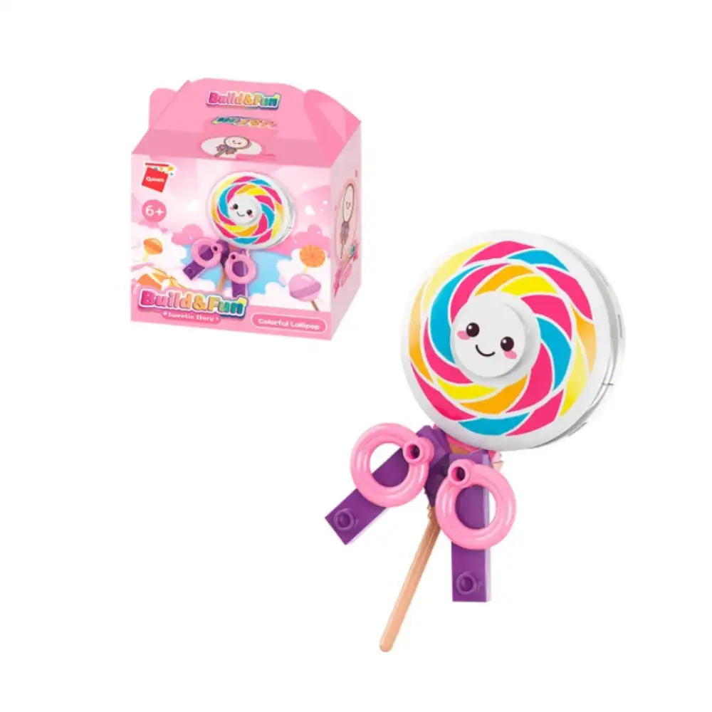 • Juguete educativo con bloques de construcción que presentan divertidos diseños de comida y paletas de caramelo, fomentando la creatividad y aprendizaje lúdico en niños de todas las edades, estimulando sus habilidades cognitivas y motoras de manera entretenida.