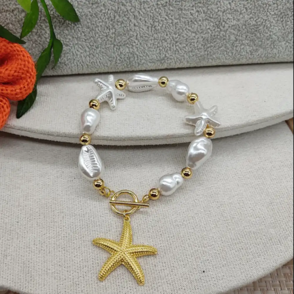 Pulsera enchapada de perlas con estrella dorada grande – elegante accesorio de moda para mujer, diseño sofisticado, acabado brillante, ideal para eventos formales y casuales