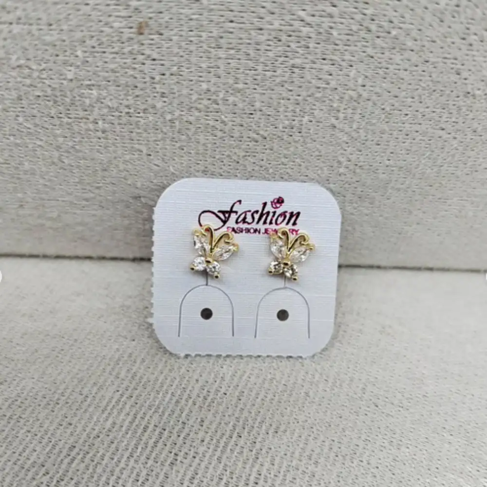 Aretes para bebé punto enchapado con broche de rosca color dorado en forma de mariposita con piedras blancas, delicados y seguros, ideales para eventos especiales, sesiones de fotos y uso diario, diseño elegante y hipoalergénico
