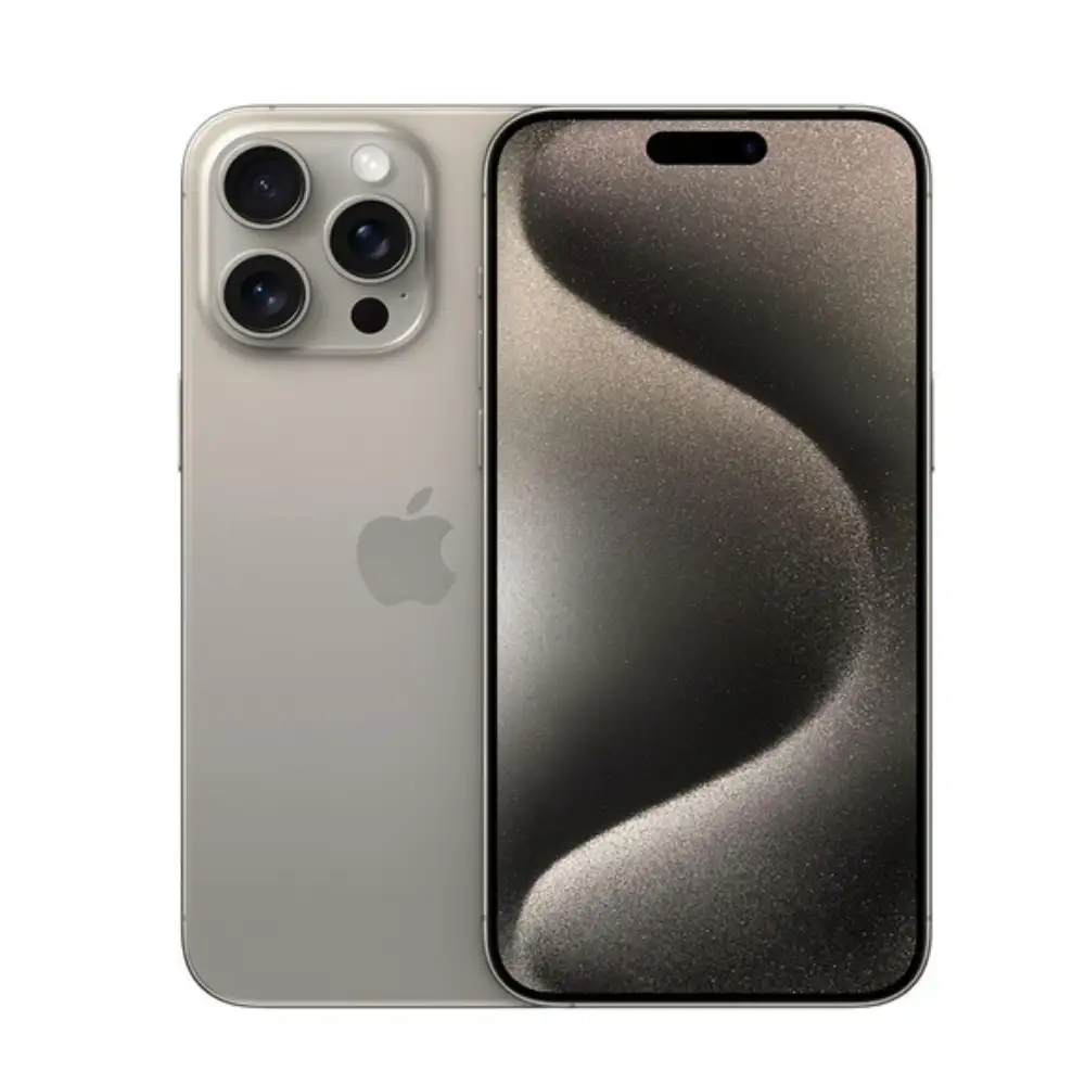 iPhone 15 Pro renovado de 128 GB en titanio natural, pantalla Super Retina XDR, chip A17 Bionic, cámara triple 48 MP y eSIM 5G con iOS 17, rendimiento premium para profesionales.