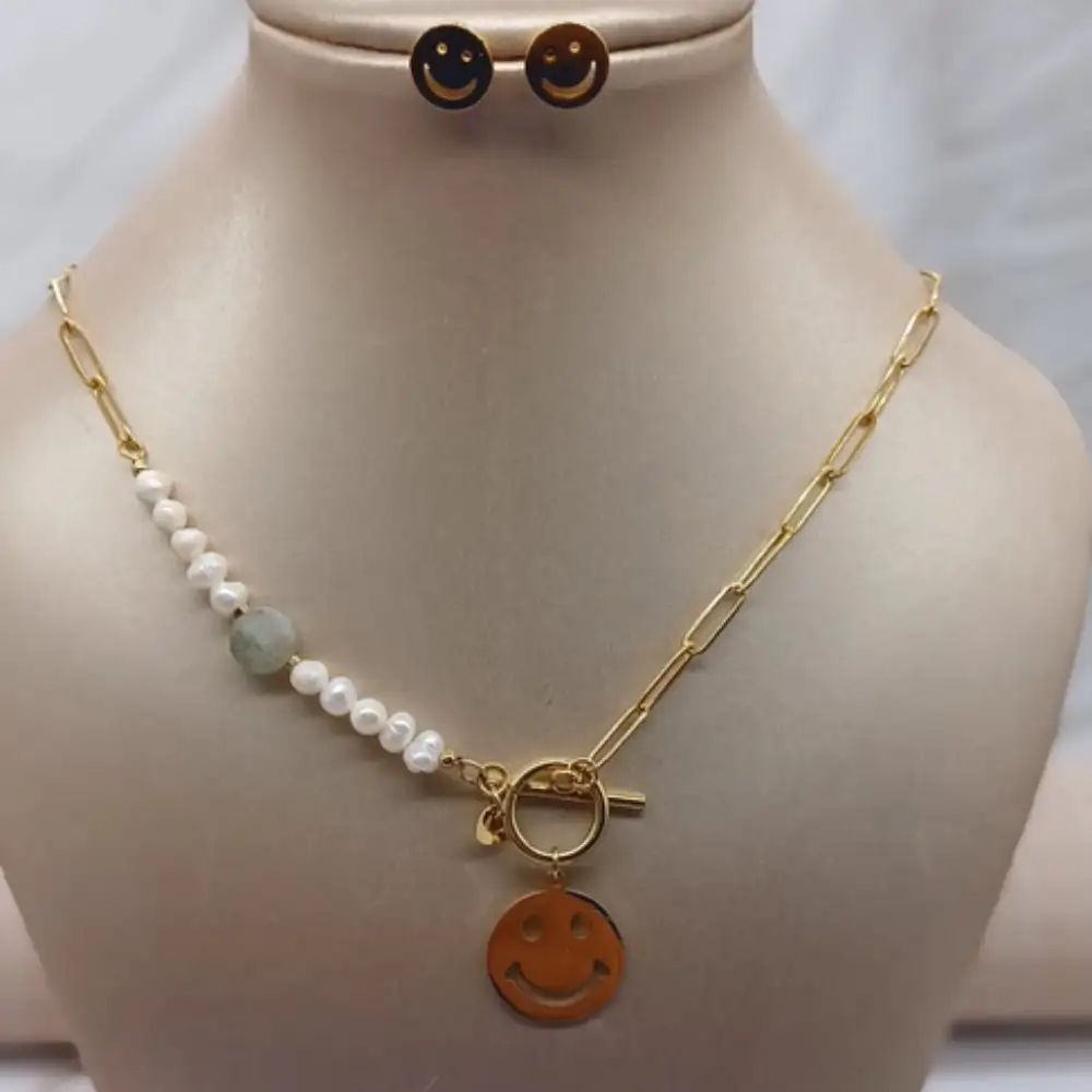 • Pensado para la comodidad diaria, el set es extremadamente ligero y se adapta al contorno del cuello y las orejas sin causar irritación el cierre de la cadena es de tipo mosquetón seguro que evita pérdidas, mientras que los aretes cuentan con ganchos de presión firmes pero fáciles de colocar, garantizando un uso sin molestias durante todo el día.