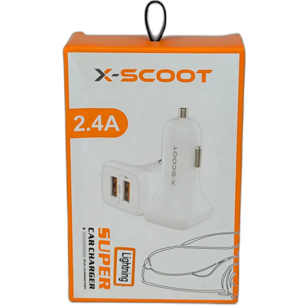 • Disfruta de la velocidad de carga con el Cargador de Carro X-SCOOT Lighting, que ofrece una potencia de 2.4A, permitiendo que tus dispositivos móviles se carguen de manera rápida y eficiente mientras viajas. Su tecnología avanzada garantiza que podrás utilizar tus dispositivos sin preocupaciones incluso en trayectos largos.