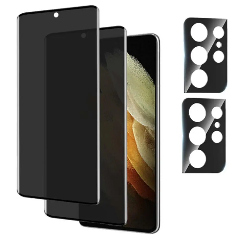 Vidrio de protección de pantalla antiespía para Samsung S21 Ultra 5G, Pack de 3 unidades, incluye protección de cámara en pack de 2 unidades para una seguridad completa