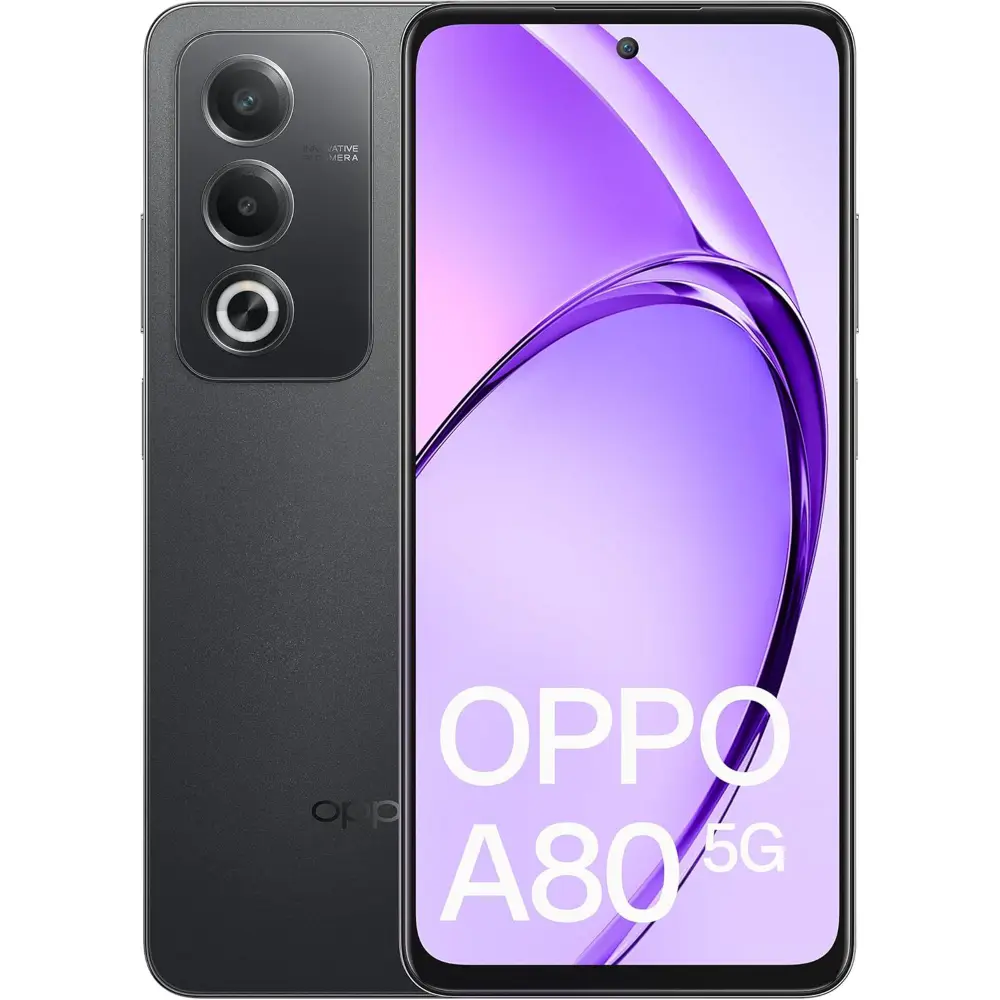 Descubre el OPPO A80 5G con 256GB de almacenamiento y 8GB de RAM en color Negro Estelar, perfecto para disfrutar de la tecnología móvil avanzada.