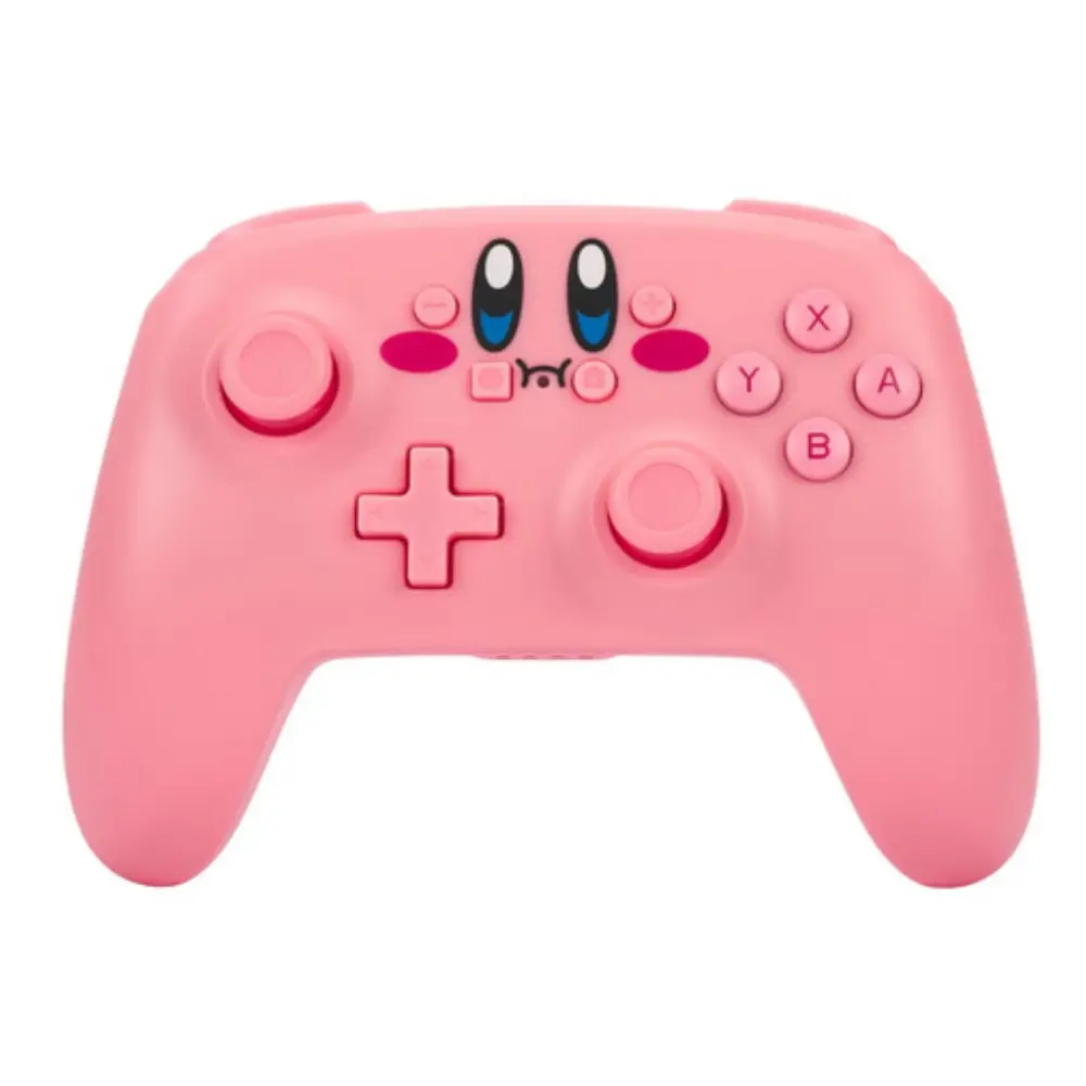 Controlador inalámbrico PowerA para Nintendo Switch en color rosa con diseño de Kirby, perfecto para una experiencia de juego divertida y estilosa.