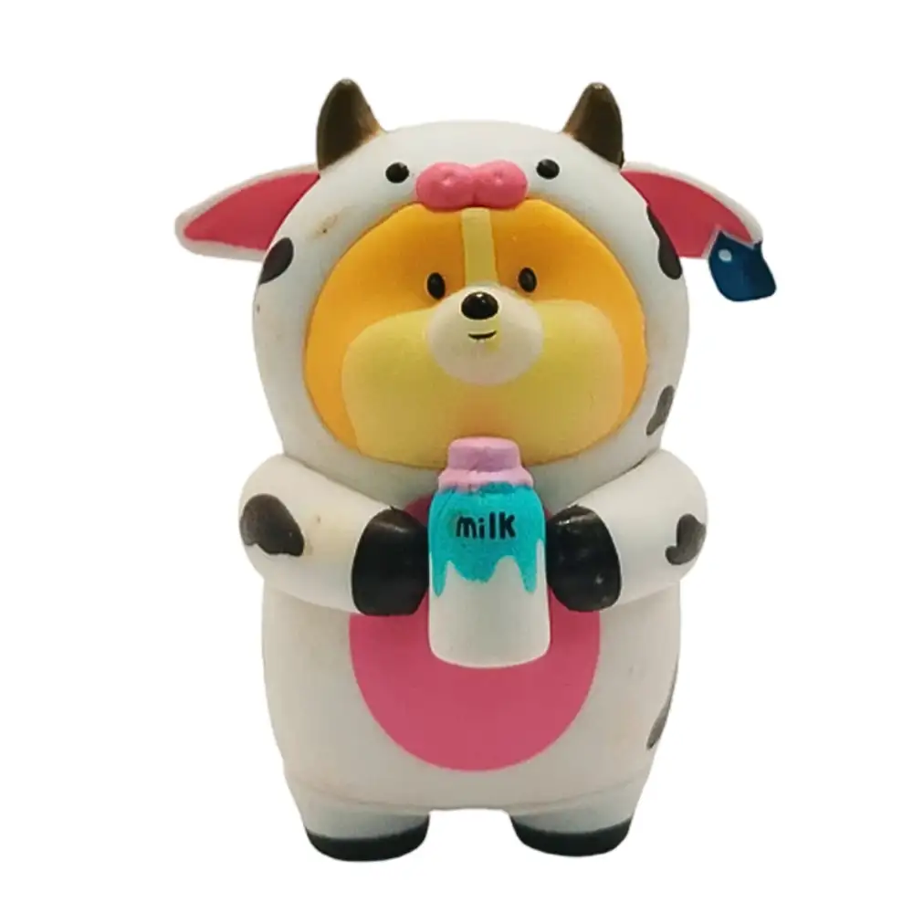 Figura decorativa de perro Corgi disfrazado de vaca, ideal para dar un toque original y encantador a cualquier espacio con alta calidad y diseño detallado.