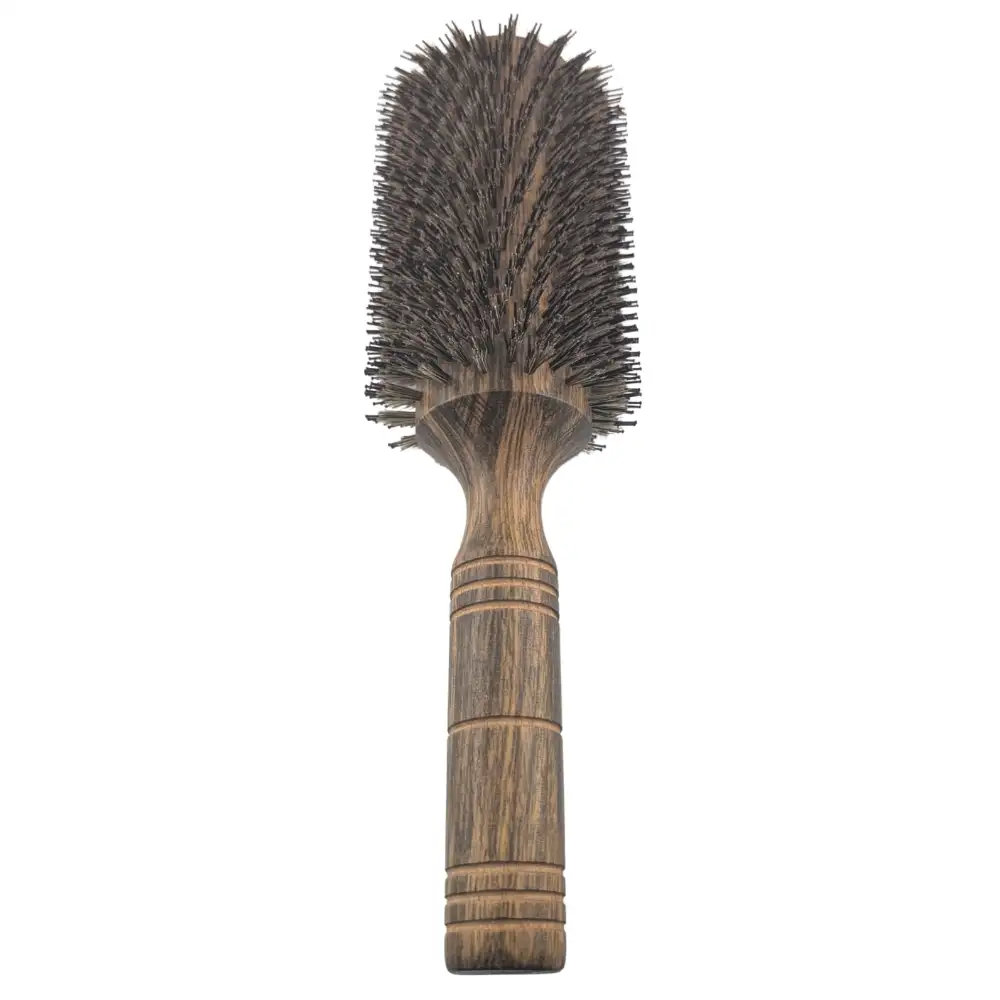 • El mango ergonómico de forma cóncava se adapta a la mano, proporcionando una sujeción firme incluso en sesiones prolongadas la longitud extra del cepillo permite trabajar con cabellos largos y gruesos sin esfuerzo, mientras que sus cerdas de madera flexible distribuyen la presión de manera uniforme, evitando roturas y tirones.