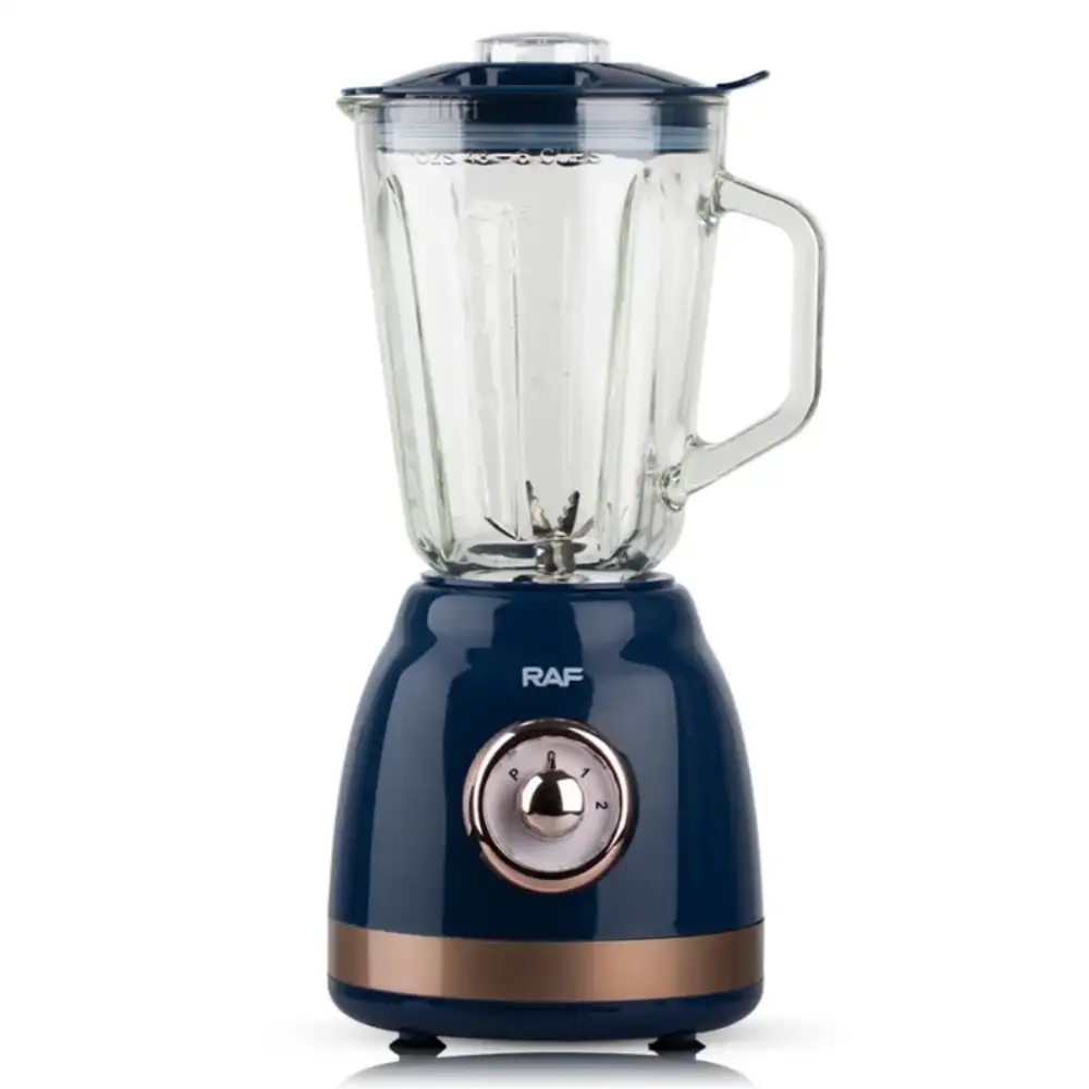 Licuadora eléctrica RAF modelo R.92826-110 de alta potencia, diseño elegante en color azul, vaso de vidrio resistente de 1.5 L, cuchillas de acero inoxidable y control de velocidad variable para batidos, sopas y salsas perfectas