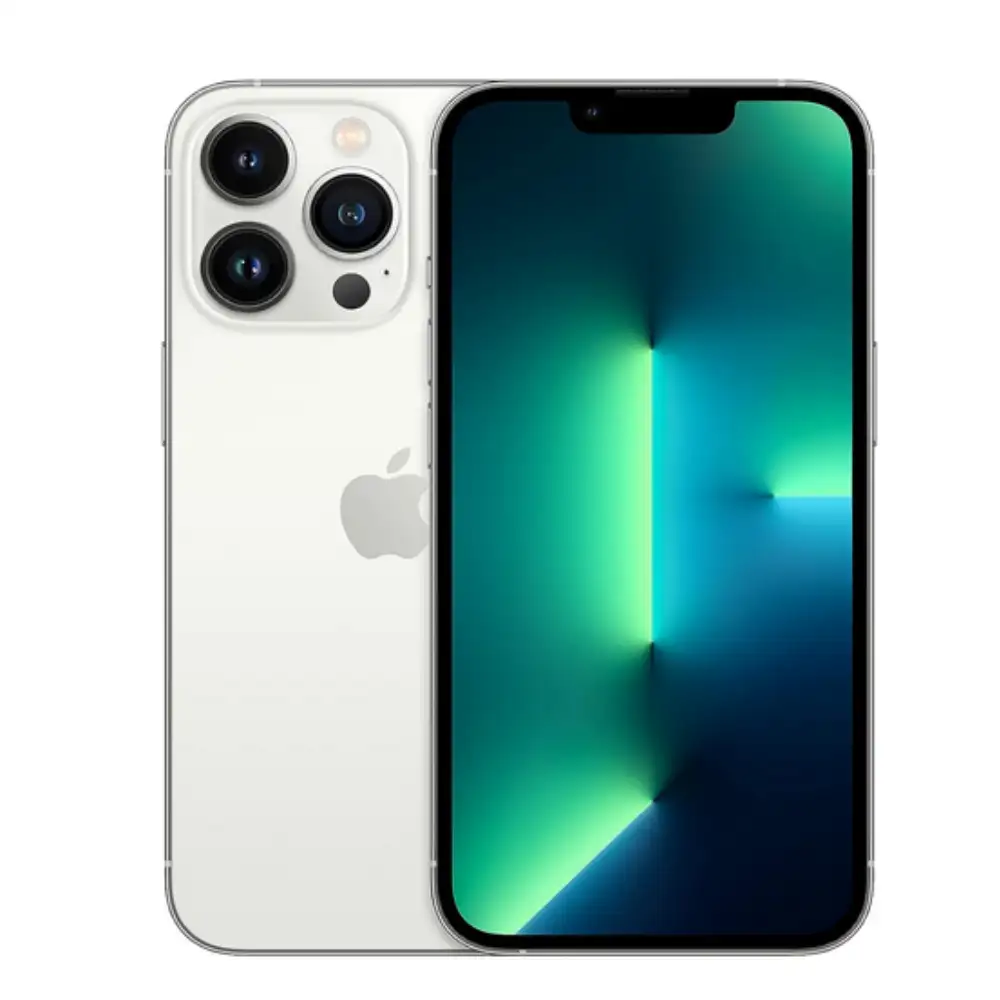 iPhone 13 Pro Max renovado de 256 GB en color plata, pantalla Super Retina XDR, cámara triple, chip A15 Bionic y batería de larga duración, rendimiento como nuevo.