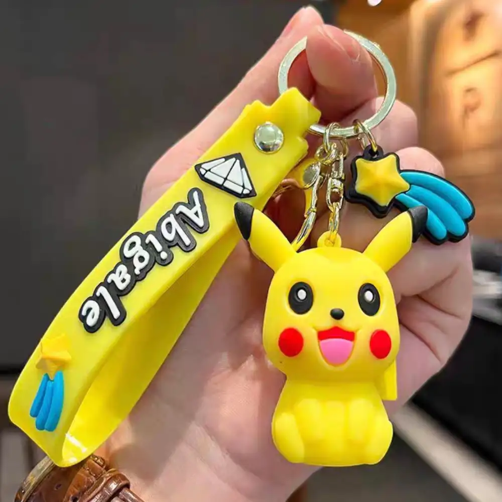 Llavero de goma con diseño vibrante de Pikachu, flexible y duradero, ideal para personalizar llaves o accesorios y como regalo perfecto para fans de Pokémon.