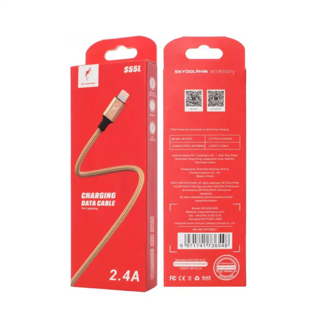 Cable de Nylon S55L USB para iPhone con Conector Dorado – Resistente, Flexible y de Alta Velocidad, Ideal para Carga y Transferencia de Datos en Dispositivos iOS, Compatibilidad Total y Diseño Premium