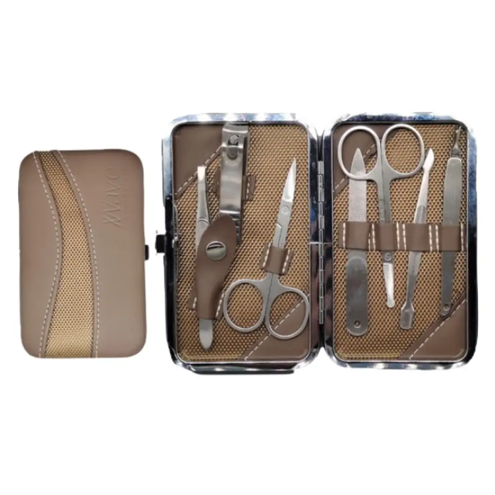 Descubre el kit de cuidado de uñas con alicate y estuche de cuero, incluye lima, pinzas y más, ideal para manicura y pedicura profesional en casa o de viaje.