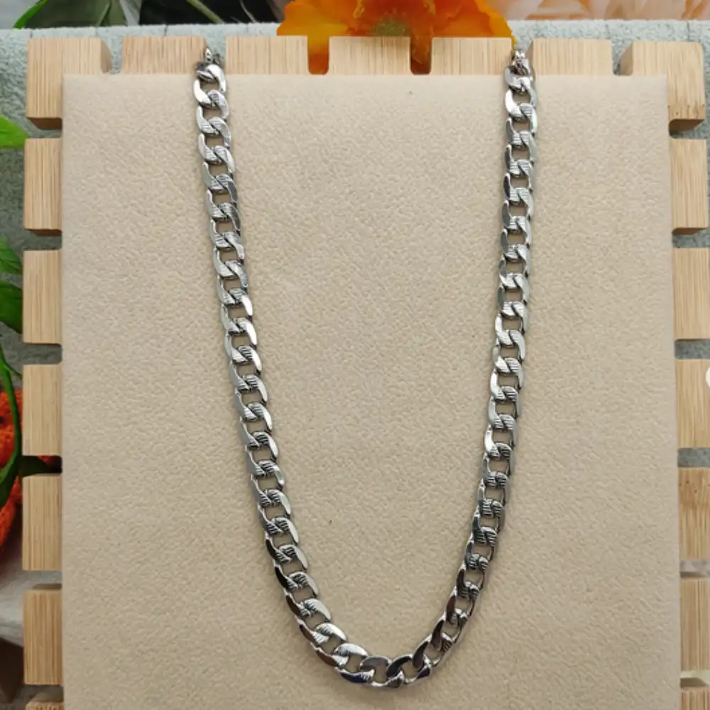 • Esta cadena de caballero está fabricada con acero inoxidable de alta calidad, lo que garantiza una resistencia superior a la corrosión y al desgaste diario su acabado plateado brillante refleja la luz de manera elegante, aportando un toque de sofisticación que complementa tanto atuendos casuales como formales, convirtiéndola en una pieza versátil y atemporal para el hombre moderno que valora la durabilidad y el estilo refinado.