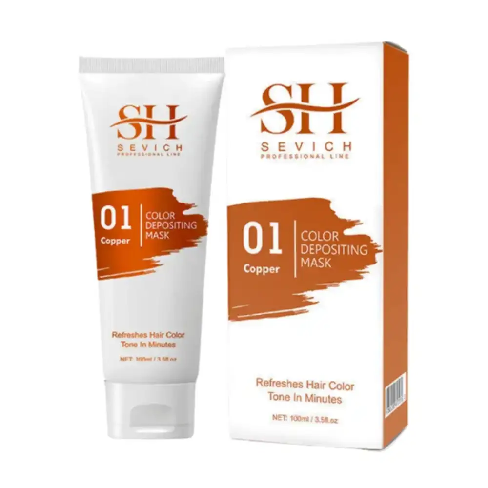 Mascarilla colorante cobriza de Sevish 100 ml, nutre y repara, tono vibrante sin amoníaco para cabellos dañados, con aceites de argán y jojoba, brillo duradero.