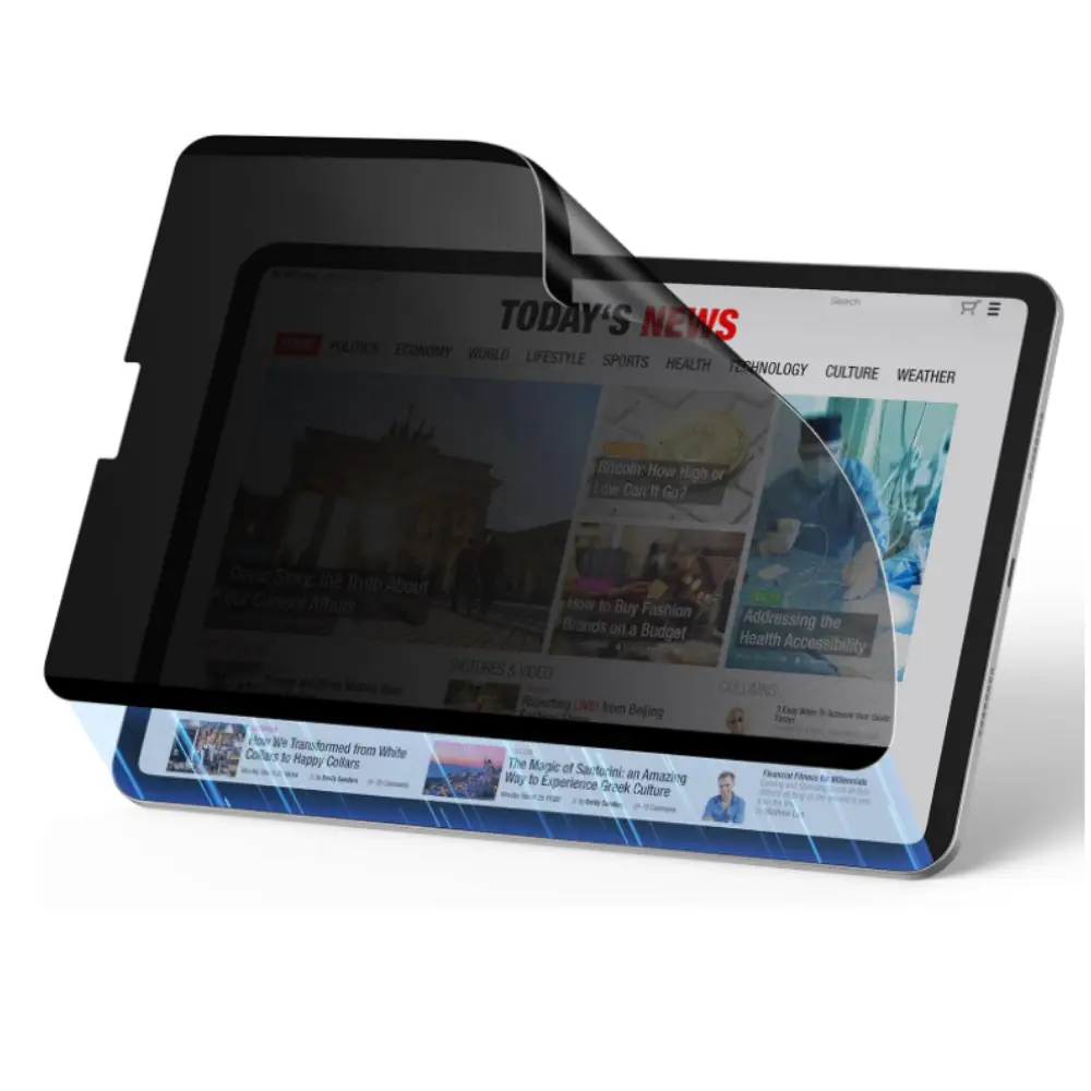 • Tecnología Anti Espía: Este protector de pantalla cuenta con una capa especial que limita el ángulo de visión, lo que impide que personas no autorizadas vean la información en tu pantalla desde los lados, brindando mayor privacidad y seguridad.