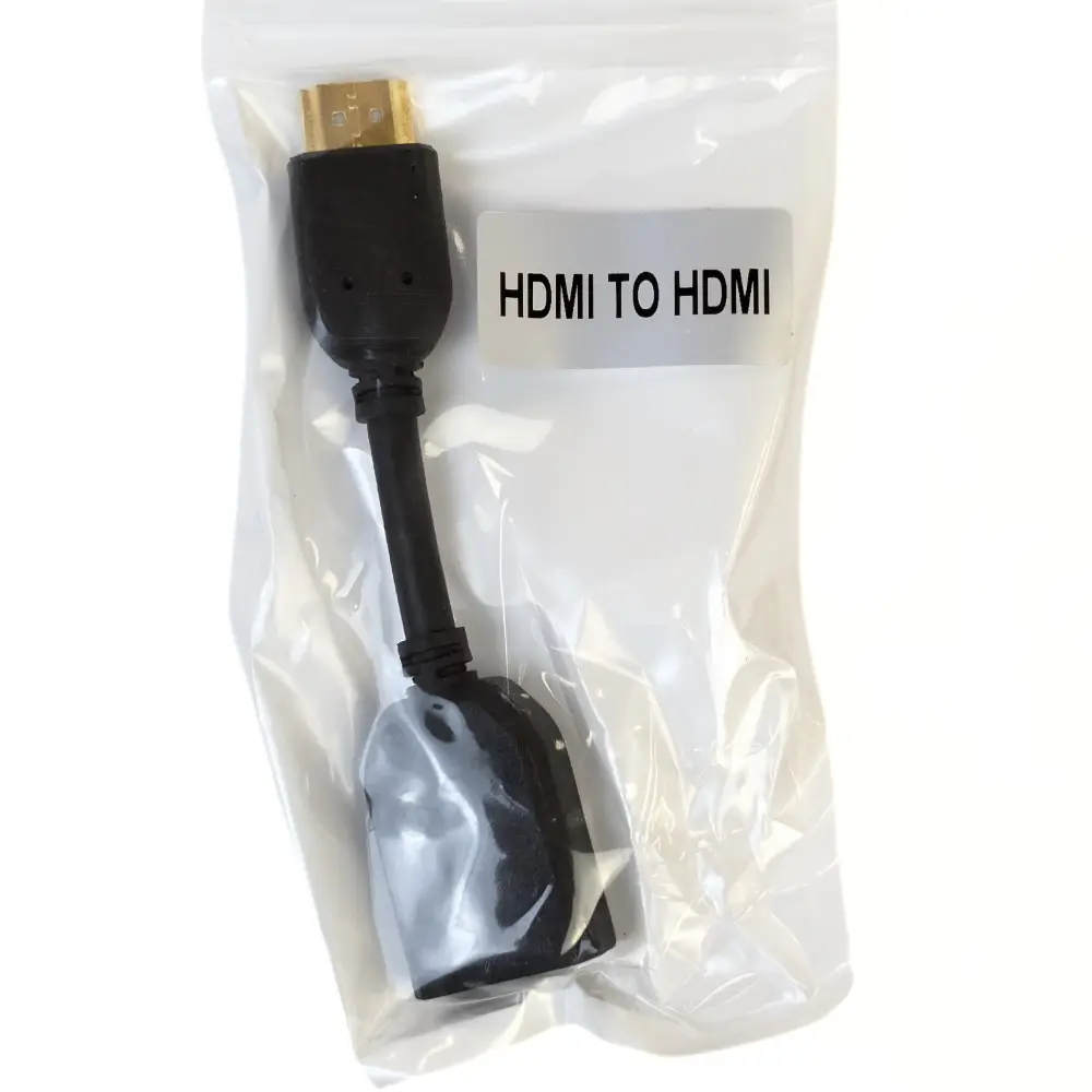 Adaptador HDMI a HDMI negro, ideal para transmitir audio y video en alta definición. Alta velocidad, compacto y compatible con diversos dispositivos.