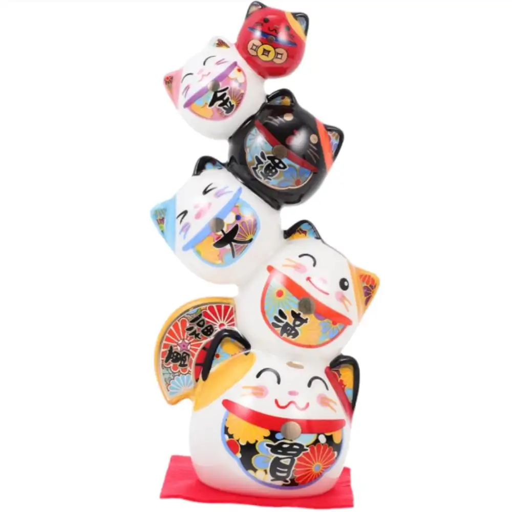 Estatua decorativa de gatos de la suerte que atrae prosperidad y energías positivas, perfecta para hogar y oficina con diseño elegante y duradero.