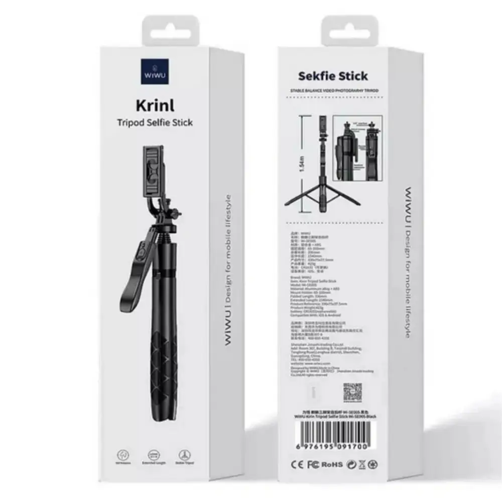 Palo de Selfie de 1.54 Metros con Trípode Bluetooth SE005 KRINL – Capture tus Mejores Momentos con Estilo y Comodidad