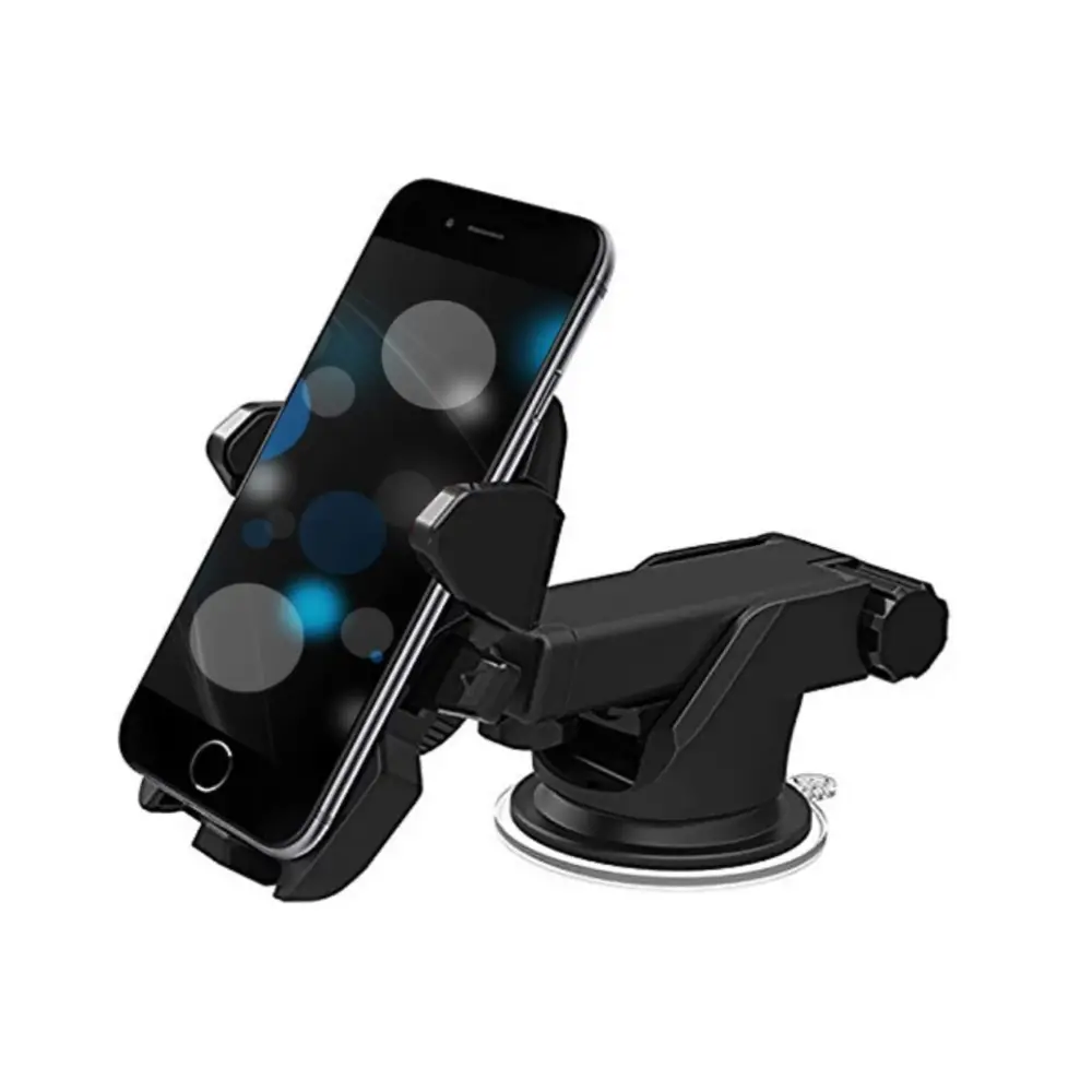• Un soporte que se adhiere al parabrisas o tablero del automóvil mediante una ventosa. Es ajustable y generalmente permite girar el celular 360 grados. Es muy útil para utilizar el GPS mientras conduces.