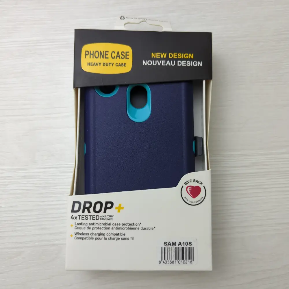 Cover protectora para Galaxy A10S en azul y celeste, con diseño moderno y protección superior. Seguridad y estilo en un solo producto.