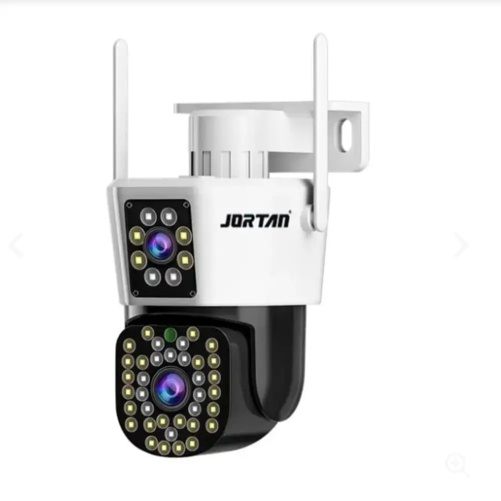 Cámara JT-8293 blanca con monitoreo dual, visión nocturna a color y más. Perfecta para seguridad 24/7 en tu hogar o negocio.