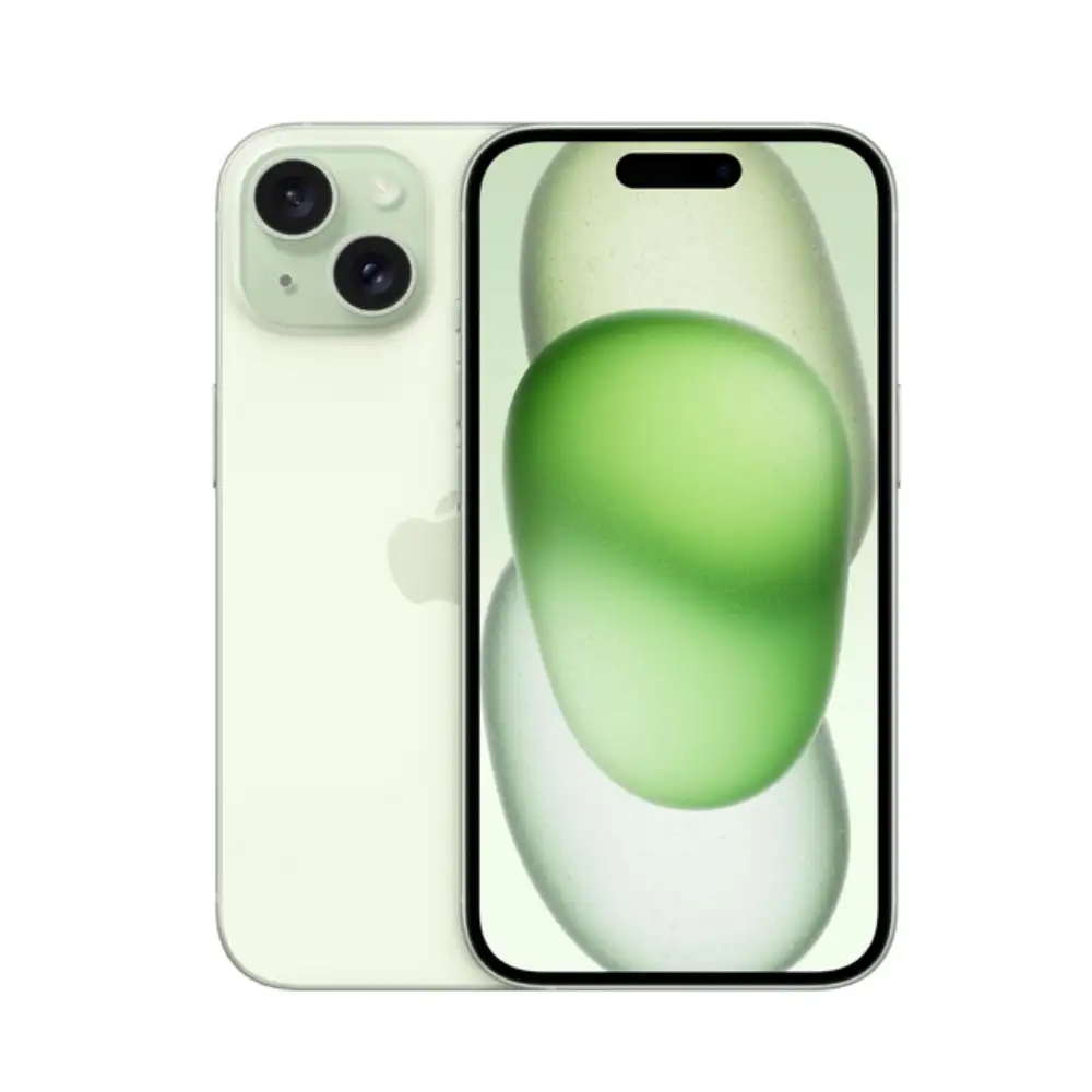 iPhone 15 Plus renovado de 128 GB en verde con eSIM, pantalla Super Retina XDR, cámara de 48 MP y procesador A16 Bionic calidad certificada y listo para usar.
