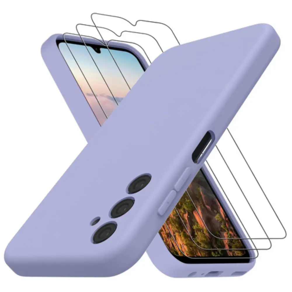 Cover de silicona morado claro para Samsung A24, proporcionando protección elegante, acceso total a funciones y diseño ligero y antideslizante.