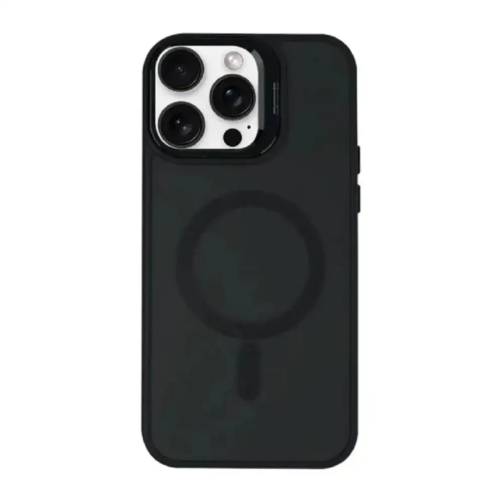 Funda magnética negra para iPhone 13 Pro Max con alta protección, carga inalámbrica compatible y diseño elegante protege contra golpes y caídas manteniendo acceso total a botones y cámaras.