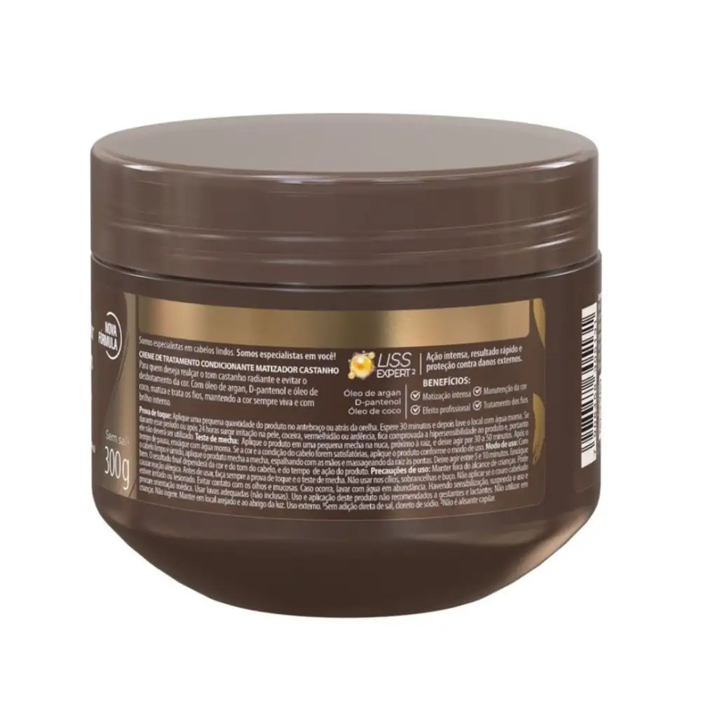 • Presentada en un práctico envase de 300 g con tapa hermética que conserva la frescura del producto, la máscara matizadora Salon Line Meu Liso Castaño brinda una excelente relación calidad‑precio además, está certificada cruelty‑free y fabricada bajo estrictos estándares de calidad, garantizando resultados consistentes y satisfactorios en cada uso.