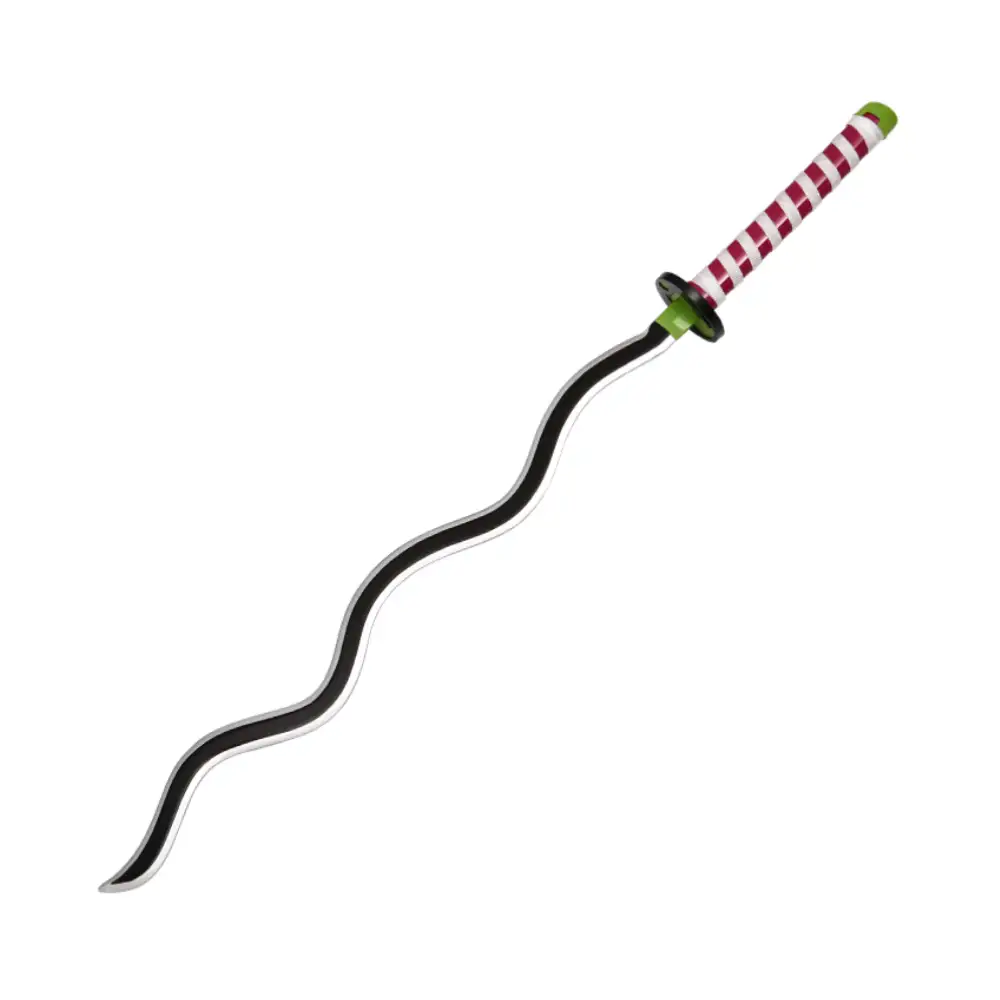 • Esta katana replica del personaje Iguro Obanai de la serie Demon Slayer está diseñada con una precisión extrema, reproduciendo cada detalle del arma original vista en el anime. La hoja está fabricada en acero de alta aleación, pulida para lograr un acabado espejo que refleja la luz con elegancia, mientras que la guardia y la empuñadura presentan los intrincados grabados y los tonos oscuros característicos del personaje, ofreciendo una pieza visualmente impactante que captura la esencia del guerrero demoníaco.