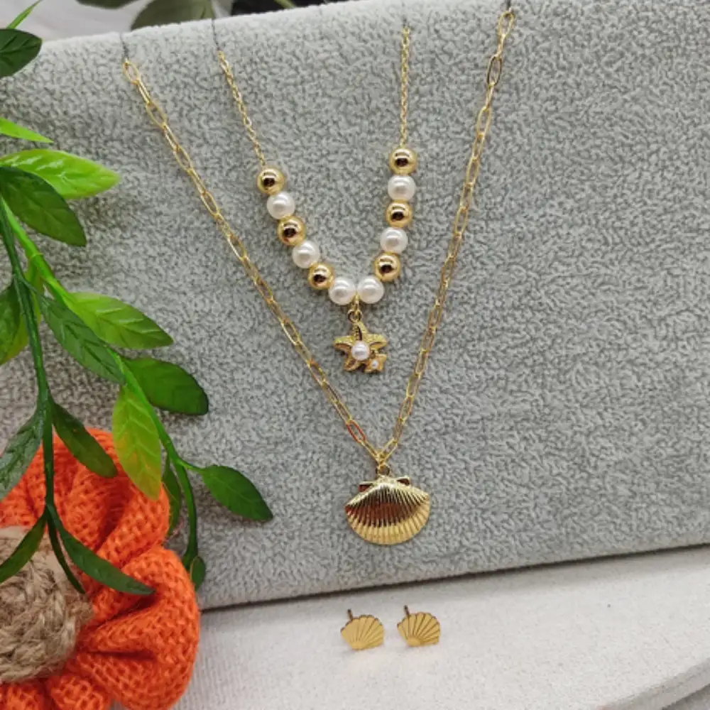 • La versatilidad de este set lo convierte en el accesorio perfecto para una amplia gama de ocasiones, desde reuniones informales en la playa hasta eventos formales como bodas o cenas de gala su diseño atemporal permite combinarlo con vestidos vaporosos, blusas de lino o incluso trajes de cóctel, aportando siempre un toque de sofisticación costera que destaca sin esfuerzo. Su estilo equilibrado entre lo clásico y lo contemporáneo asegura que se mantenga relevante temporada tras temporada, adaptándose a las tendencias de moda sin perder su identidad única inspirada en la naturaleza marina.