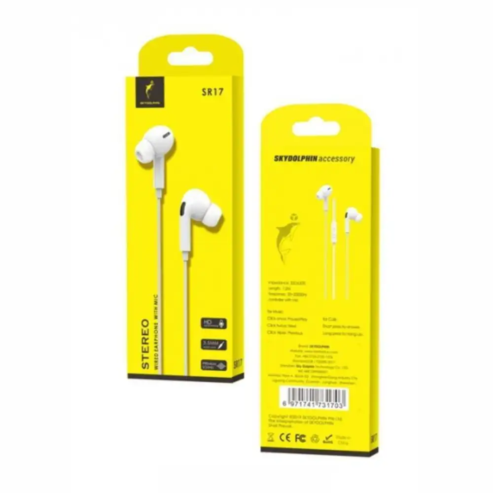 Audífono Jack Serie SR17 con conector de 3.6 mm, color blanco, sonido de alta fidelidad, diseño ergonómico y cable reforzado para uso profesional y ocio, compatible con dispositivos móviles y equipos de audio