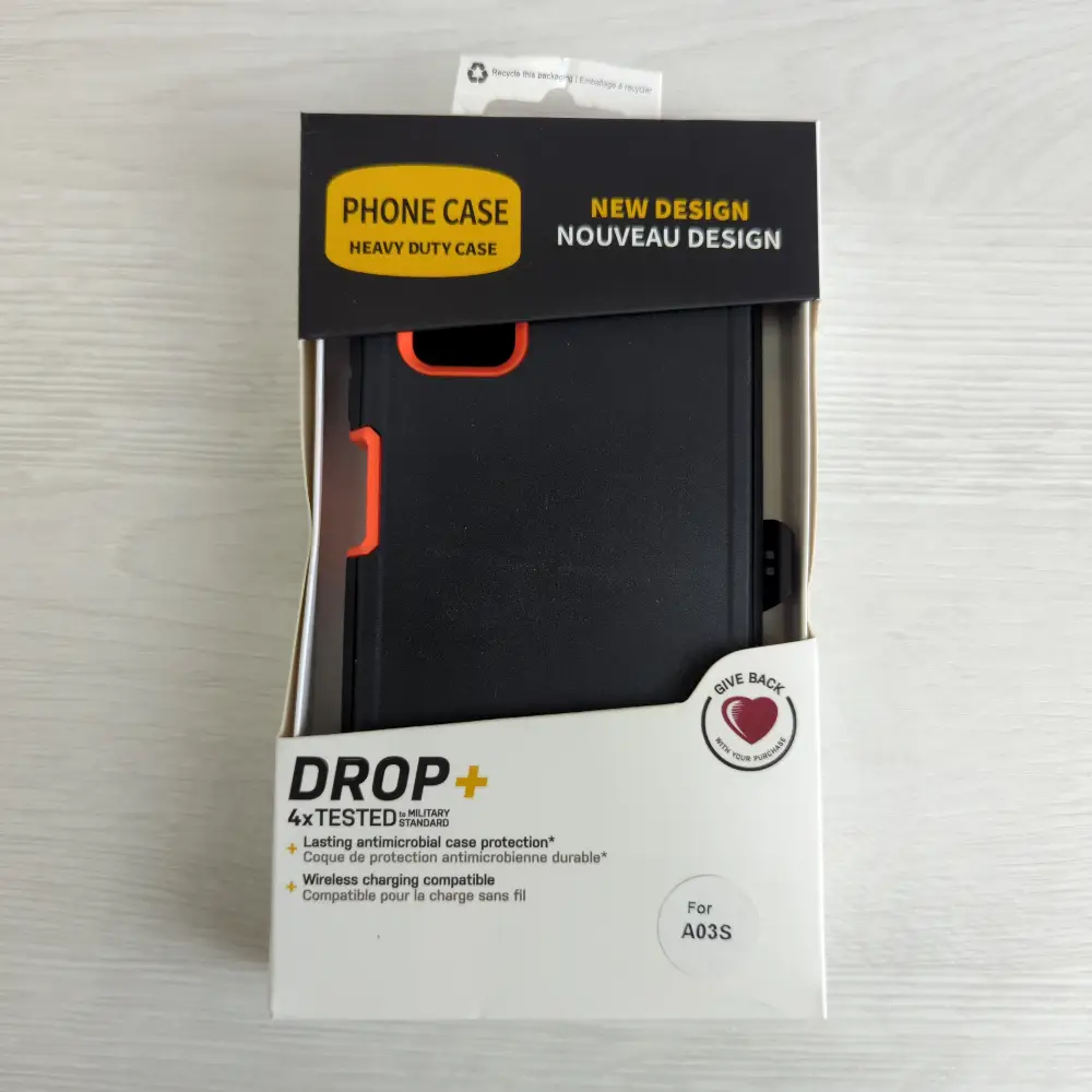 • El diseño elegante en negro y naranja no solo brinda resistencia sino que también añade un toque moderno a tu dispositivo. Su estilo llamativo hará que tu Galaxy A03S destaque entre otros teléfonos, siendo ideal para aquellos que buscan combinar protección con un diseño estético atractivo.