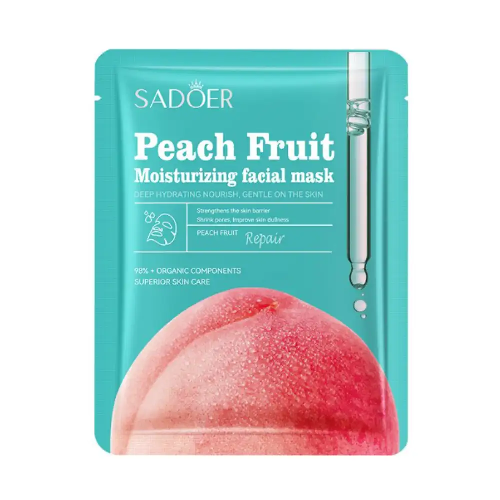 Mascarilla facial de durazno SADOER, hidratación profunda y antioxidante, libre de parabenos revitaliza la piel seca, dejándola suave y luminosa en una semana.