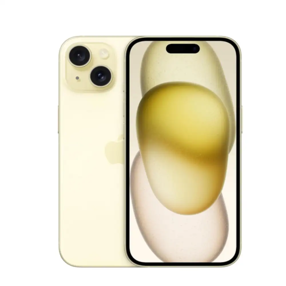 iPhone 15 Renovado de 128 GB en color Amarillo con chip A16 Bionic, pantalla Super Retina XDR de 6.1 pulgadas, cámara dual de 48 MP, resistencia al agua IP68, desbloqueo Face ID y compatibilidad 5G – rendimiento premium a precio accesible