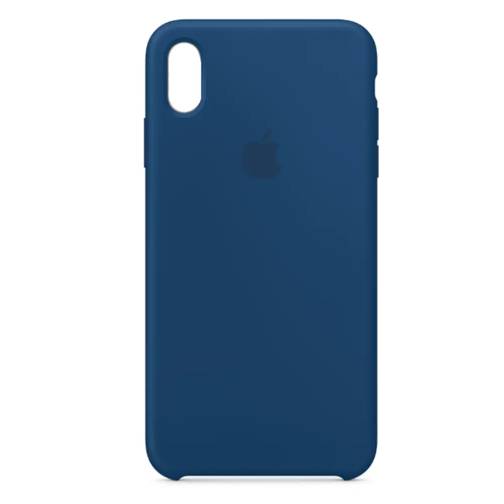 Cover de silicona azul para iPhone XS, proporciona protección contra caídas y estilo moderno. Acceso fácil a todos los puertos.