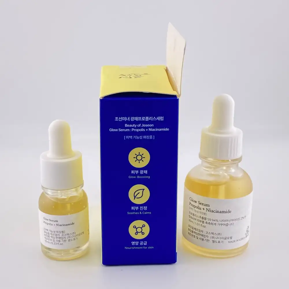 Sérum iluminador con propóleo y niacinamida de Beauty of Joseon – fórmula avanzada que brinda luminosidad, unifica el tono, reduce manchas y controla el sebo, con textura ligera, absorción rápida y sin fragancia, apto para todo tipo de piel